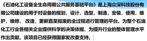上海众深科技股份有限公司完成石油化工设备全生命周期公共服务基础平台建设众深股份 LCPSP石化设备全生命周期平台